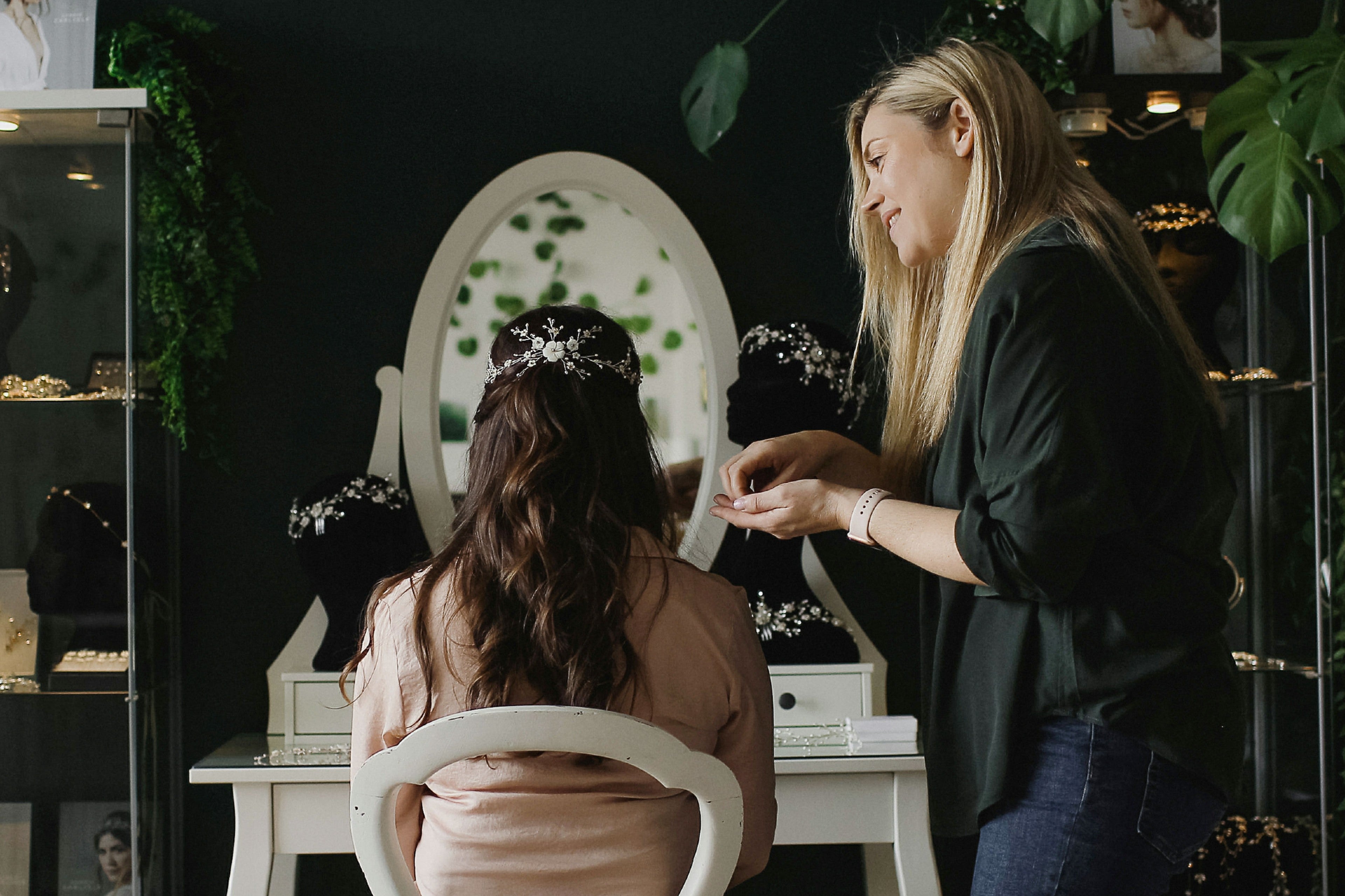 As well as being a working studio, my atelier includes a beautiful consultation area where I host one-to-one accessory styling appointments in person or online to help brides find their wedding hair accessory in a calm, relaxing and welcoming environment.